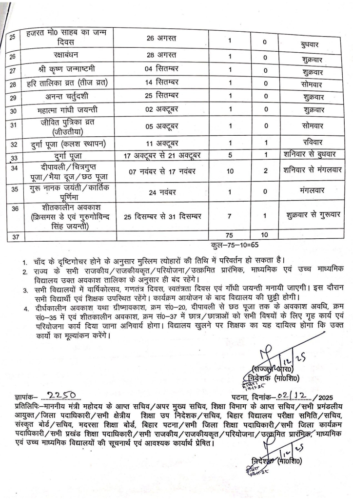राज्य में संचालित उर्दू और संस्कृत माध्यम के विद्यालयों के लिए भी शिक्षा विभाग ने अलग से छुट्टियों की लिस्ट जारी की है. इन संस्थानों में धार्मिक अवसरों और विशेष मान्यताओं को ध्यान में रखते हुए छुट्टियां तय की गई हैं. इससे यह सुनिश्चित किया जा सकेगा कि सभी छात्र अपनी धार्मिक आस्थाओं और संस्कृतियों का सम्मान करते हुए अवकाश का लाभ ले सकें.